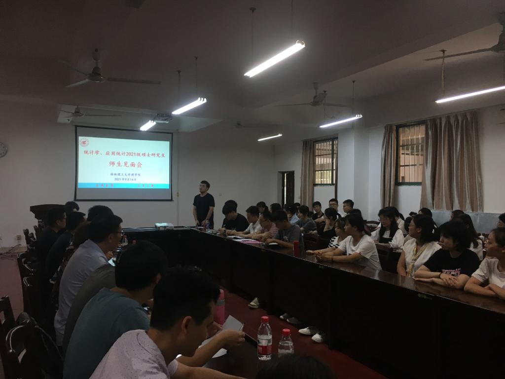 2021年9月14日下午,学院2021级硕士研究生师生见面会在雁山校区07122和08201会议室分别举行。统计学、物理学、应用统计、材料与化工四个专业的硕士生导师与77名新生参加了见面会。