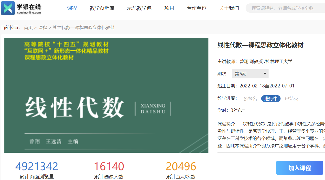课程是人才培养的核心要素,课程质量直接决定人才培养质量。2019年区教育厅启动为期3年的一流课程评选计划,学院对此高度重视,组织成立三大公共基础数学课程组,为实现“每年必报,每报必得”,学院制定了三年行动计划。2019年《线性代数》获选学校在线开放课程,同时学院把完成在线开放课程作为学院当年重点任务。2020年该课程入选学校课程思政示范课,2021年获学校线上线下一流课程。学院重视本科课程的内涵型建设和高质量发展,并将此作为真正推动学校教育教学改革落实落细见成效的标杆举措,多次邀请专家到学院做课程教学报告,加大课程建设支持力度,健全课程管理和评价制度,着力打造一批具有高阶性、创新性和挑战度的“一流课程”,全面提升课程建设水平与人才培养质量。