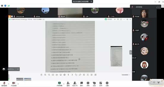 为了进一步做好新一轮本科教育教学审核评估评建工作,便于统计学教研室老师掌握本科教学工作审核评估的基本知识,领会评估工作的基本要求,形成“人人关心评估、人人了解评估、人人参与评估、人人支持评估”的浓厚氛围,4月27日,统计学教研室召开组织落实学习《审核评估学习手册(教师版)》的线上会议。会议由教研室主任王彬老师主持,教研室全体老师参加。