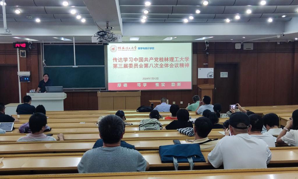 7月12日下午,太阳集团2007在屏风校区9401召开全体教职工会议,传达学习中国共产党桂林理工大学第三届委员会第八次全体会议精神,会议由学院党委书记江玲主持。