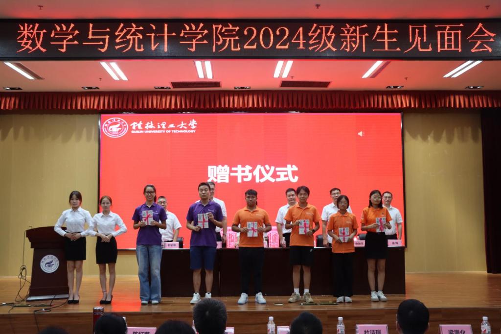 接下来,2024级新生班主任代表陈红菊老师发言,她介绍了大学生活的注意事项和学习方法,希望同学们尽快适应新环境,与同学和睦相处。随后,2024年研究生国家奖学金获得者谷杰同学作为榜样领航分享了学习经验和成长历程,激发了新生斗志。2024级本科生新生代表朱珺泽同学则代表全体2024级新生表达了对大学生活的期待和憧憬。其后,进行了赠书仪式,学院领导向2024级新生代表赠送书籍,并鼓励同学们多读书、读好书,让书香浸润心灵,用阅读点亮人生。