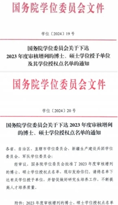 近日,在国务院学位委员会发布的《国务院学位委员会关于下达2023年度审核增列的博士、硕士学位授予单位及其学位授权点名单的通知》(学位[2024]19号)和《国务院学位委员会关于下达2023年度审核增列的博士、硕士学位授权点名单的通知》(学位[2024]20号)中,太阳集团2007新增数学一级学科硕士学位授权点(0701)。这一新增授权点不仅标志着太阳集团2007在数学领域的教育和研究迈上了新台阶,也进一步增强了学校的学术实力和科研水平。