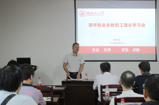 2020年9月1日下午,学院在雁山校区召开全体教职工集中理论学习会,学习会由学院党委副书记、院长肖剑荣主持并主讲。