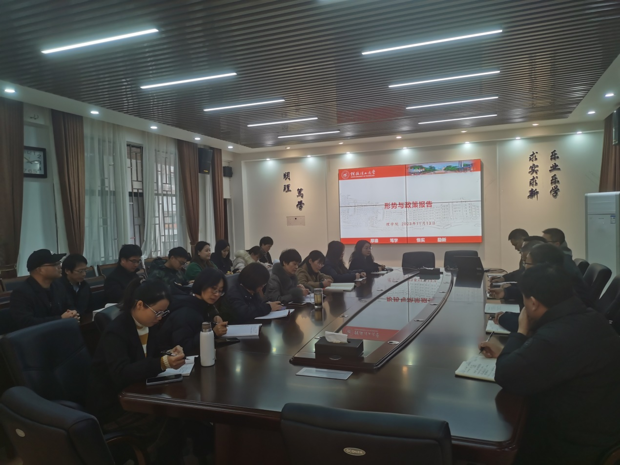 11月13日上午,理学院在08201会议室召开形势与政策专题报告会,会议主题为新时代全面从严治党的伟大实践,学院党委委员、党支部书记及教师代表参加会议,理学院党委书记欧阳胜权主持会议并作报告。