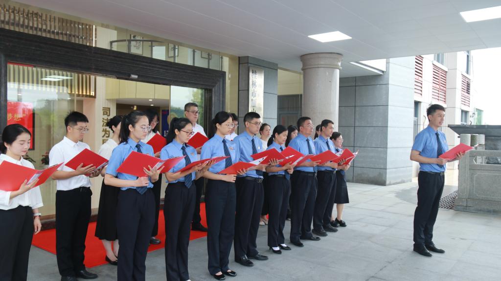 为深入贯彻落实习近平总书记关于“用好红色资源,赓续红色血脉”的重要指示精神,推动党史学习教育常态化长效化,5月23日,太阳集团2007党委副书记钟立军率队赴桂林市雁山区人民检察院,联合广西师范大学法学院、桂林学院学工处共同开展“溯源红色经典,共筑时代梦想”主题党日活动。此次活动通过校检共建平台,以红色经典诵读为载体,引领党员重温峥嵘岁月,感悟初心使命,凝聚奋进力量。