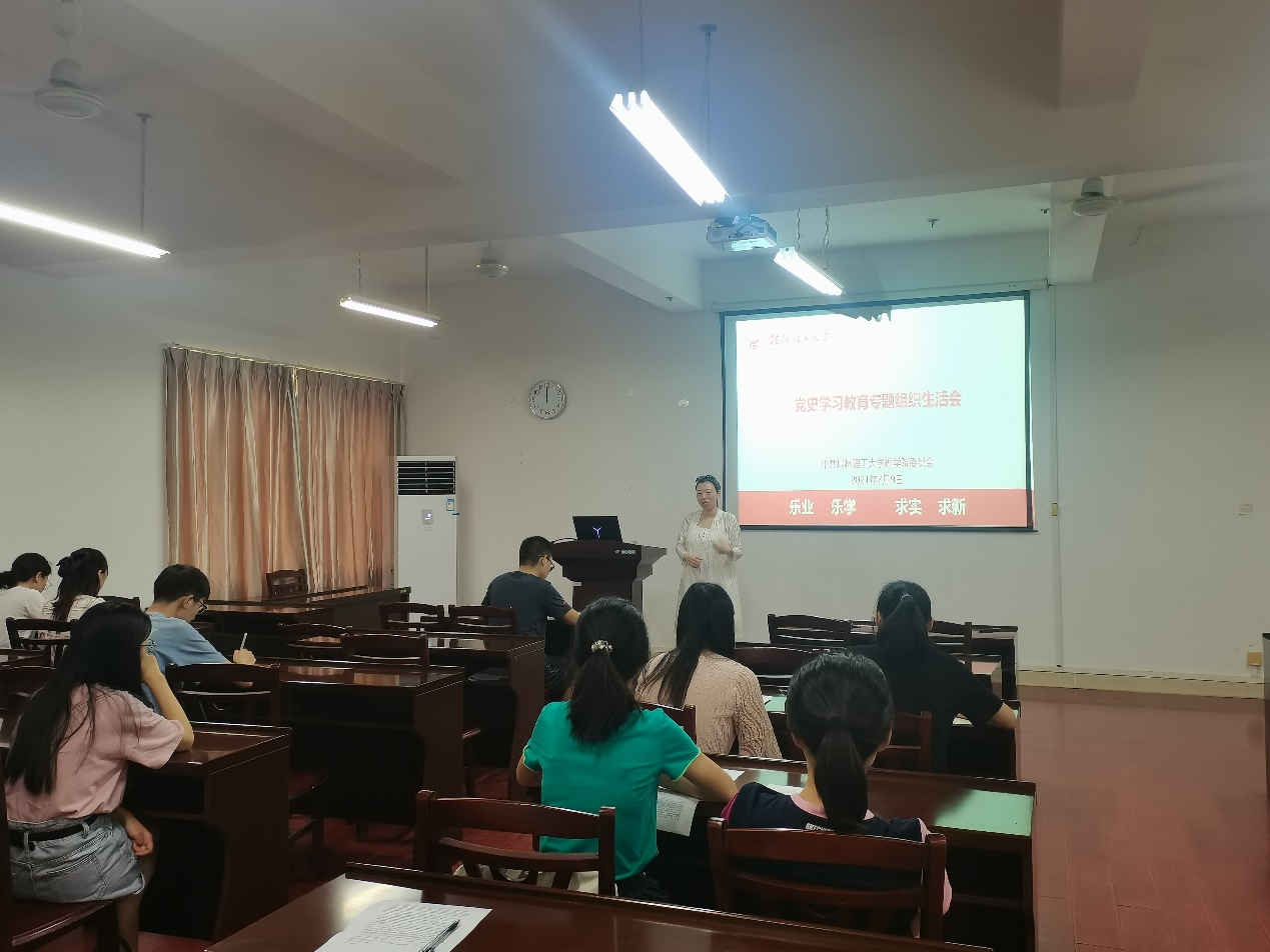 会议第二项进行党史学习教育组织生活会。首先夏琳老师结合习近平总书记在庆祝中国共产党成立100周年大会上的重要讲话以及党史学习教材,带领各位党员回顾了我们党走过的100年峥嵘岁月,强调了学习党史的重要性,各位党员同志应该主动将学习党史放在日常学习和生活中,以史为鉴,才能开创未来。