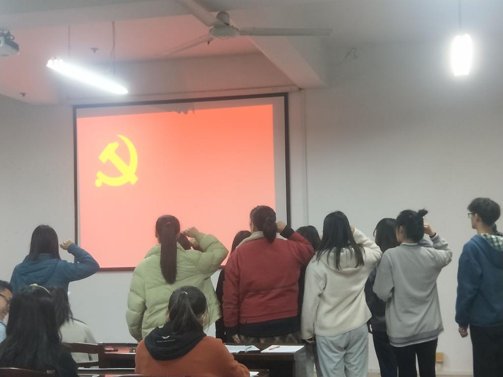 最后,夏晴同志带领全体新接收预备党员同志面向党旗宣读入党誓词,并对本次大会作出总结,她对本次接收的9位预备党员表示了衷心的祝贺,并希望彭静等9位同志再接再厉,做好党员先锋模范作用。新的一批预备党员也表现出了自己高涨的热情和坚定的决心。相信在理学院党委的带领下,他们会变得更加优秀,党支部力量将会更加壮大。