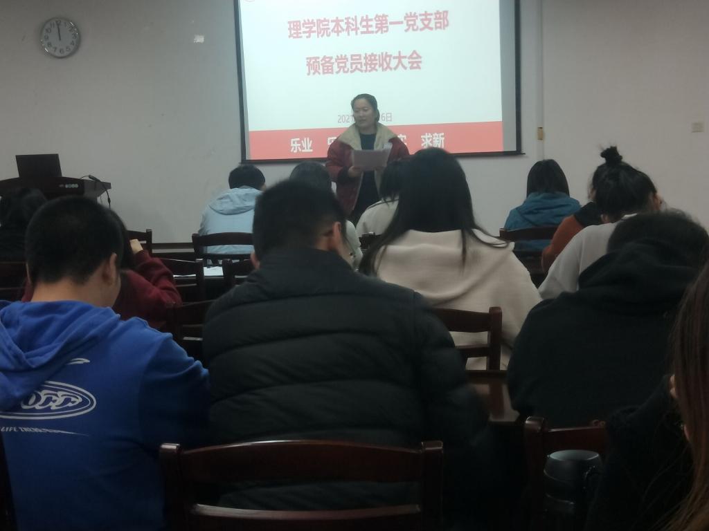 2021年12月16日,本科生第一党支部在雁山校区07122会议室召开预备党员接收大会,本次会议由支部书记夏晴同志主持,支部全体成员及彭静、谢海兰等9名拟接收发展对象参与此次会议。