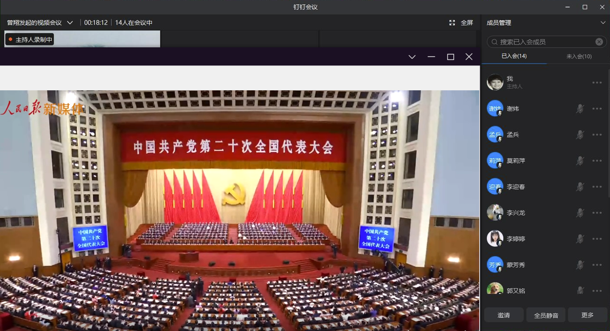 10月27日,教工一支部用钉钉以在线方式开展学习党的“二十大报告”的主题党日活动,教工第一党支部党员同志集中重温观看习近平总书记在中国共产党第二十次全国代表大会上的报告。