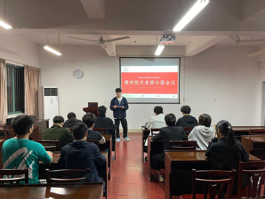 10月26日晚18:30,太阳集团2007在07122会议室召开桂林理工大学第五次学生代表大会理学院代表团分团会议,会议由理学院代表团团长于超奇同学主持,学院12位学生代表参加了本次会议。