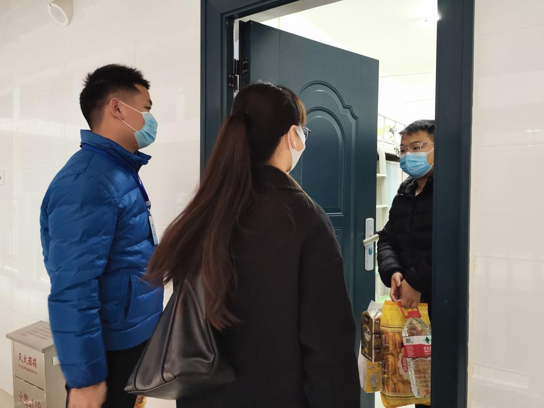 走访过程中,辅导员们与同学们进行了亲切交流,对同学们返校后的思想动态、学习准备、宿舍内务等情况进行了充分掌握,并勉励同学们要尽快调整状态,叮嘱学生们要自觉做好每日体温测量,养成良好的卫生习惯,增强个人防范意识,履行好个人义务,严格执行学校相关规定,以饱满的热情投入到学习生活中去。随后,各年级辅导员老师们为入住健康观察点的同学送上了爱心慰问品,同时仔细询问了同学们在健康观察期间的身体状况、学习和生活情况,详细了解了同学们有什么实际困难和需求,特别关注了同学们在健康观察期间的情绪调适及心理状态,叮嘱同学们照顾好自己,注意网课时间,健康观察期间有任何生活和学习上的问题及时向老师反映,学院将为同学们提供全方位保障。