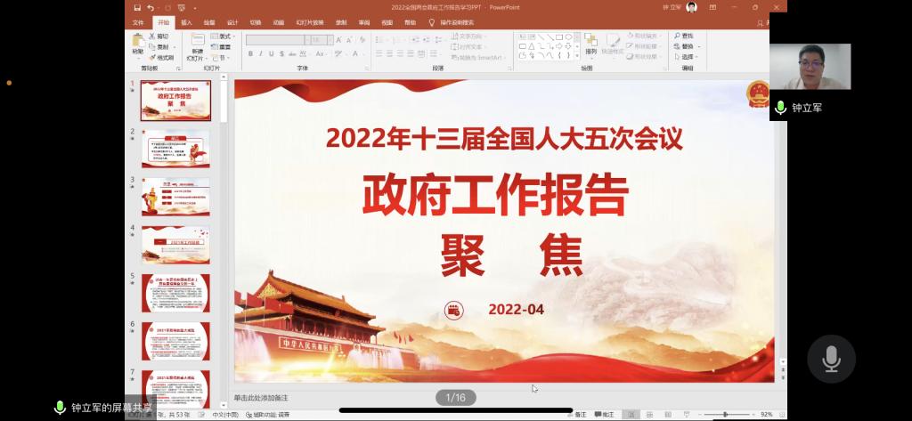在专题学习会上,钟书记从“2021年工作回顾、2022年经济社会发展总体要求和政策取向、2022年政府工作任务”三个方面进行了阐述和详细解读。钟书记强调:“同学们要结合实际认真学习、贯彻落实两会精神,深入了解党和国家的大政方针,坚持以习近平新时代中国特色社会主义思想为指导,奋力做“先觉者”、“先行者”、“先倡者”的时代新人,为把我国建设成为富强民主文明和谐美丽的社会主义现代化强国、实现中华民族伟大复兴的中国梦不懈奋斗”。