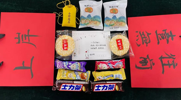 学院还为全体2025年考生们精心准备了 “考研礼包” 。礼包别具深意,柿饼承载 “柿柿如意” 的美好祝愿,“士力架”助力同学们克服疲惫、勇往直前,旺旺雪饼与棒棒糖预示着未来的甜蜜与顺遂,期望大家考研之路 “旺” 运相伴。学弟学妹们书写的祝福明信片情真意切,字里行间的鼓励让考研学子倍感温暖,增强了他们迈向考场的勇气与决心。