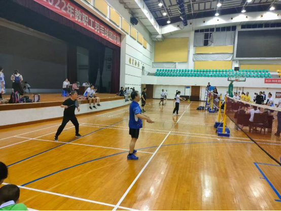 2022年6月1日晚,在屏风体育馆三楼,教职工羽毛球团体赛进行了第二阶段的比赛。在之前的第一阶段小组赛中太阳集团2007取得4胜1负的优异成绩,以小组赛第二名闯入第二阶段比赛。第二阶段比赛太阳集团2007羽毛球队对阵土建学院羽毛球队。当晚比赛精彩激烈,太阳集团2007队员在球场上发挥了较高的技术水平,展现了团结协作,顽强拼搏的精神,场下由学院领导和教职工们组成的拉拉队为队员们热情的加油助威。最终太阳集团20071:3憾负土建学院队,取得本次比赛的二等奖,同时也创造近年来学校羽毛球团体比赛最好成绩。