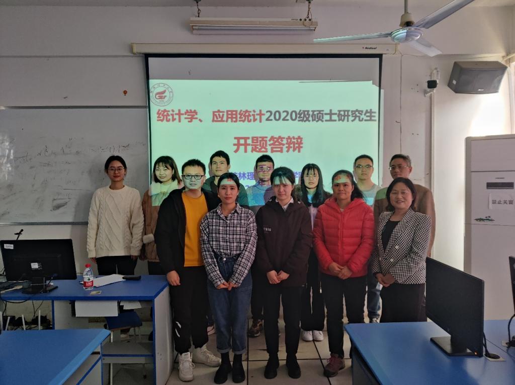 2021年12月14日、12月21日,理学院统计学、物理学、应用统计和材料与化工专业2020级64名硕士研究生分成7个小组进行了开题答辩。各专业导师、低年级学生参加了答辩会。