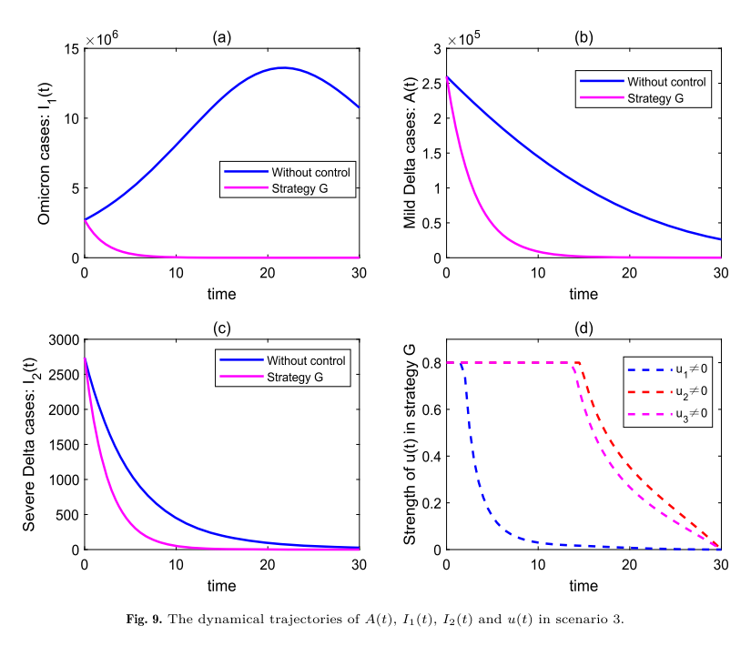 在新冠疫情防控期间,如何根据某一城市/区域的COVID-19的早期传播情况,来制定具体的疫情防控策略是一个重要的研究课题。该研究团队以2021年末在美国境内首次出现的COVID-19的Delta变异毒株和Omicron变异毒株同时传播的情况为例,总结医学观察中的经验传播机制,建立了一个更具体合理的新模型。然后通过动力学的定性分析和对真实数据的定量分析,借助一些判断指标,制定了最优的控制策略。本文不仅为美国当地疫情防控策略提供了重要的科学依据,还为传染病动力学中两种互斥病毒的竞争传播的研究提供重要参考。
