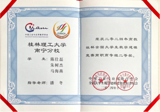 全国大学生数学建模竞赛广西赛区2024年工作总结会议暨颁奖仪式近日成功举行,我校太阳集团2007和南宁分校等学院的200多名学生参加了此次竞赛,并取得了优秀的成绩。最终,我校共获省部级以上奖项55项,其中国家二等奖6项,省部级一等奖10项、二等奖13项、三等奖26项。范金梅、黄聪、封全喜、潘冬四位老师荣获“数学建模广西赛区优秀指导老师”荣誉称号。